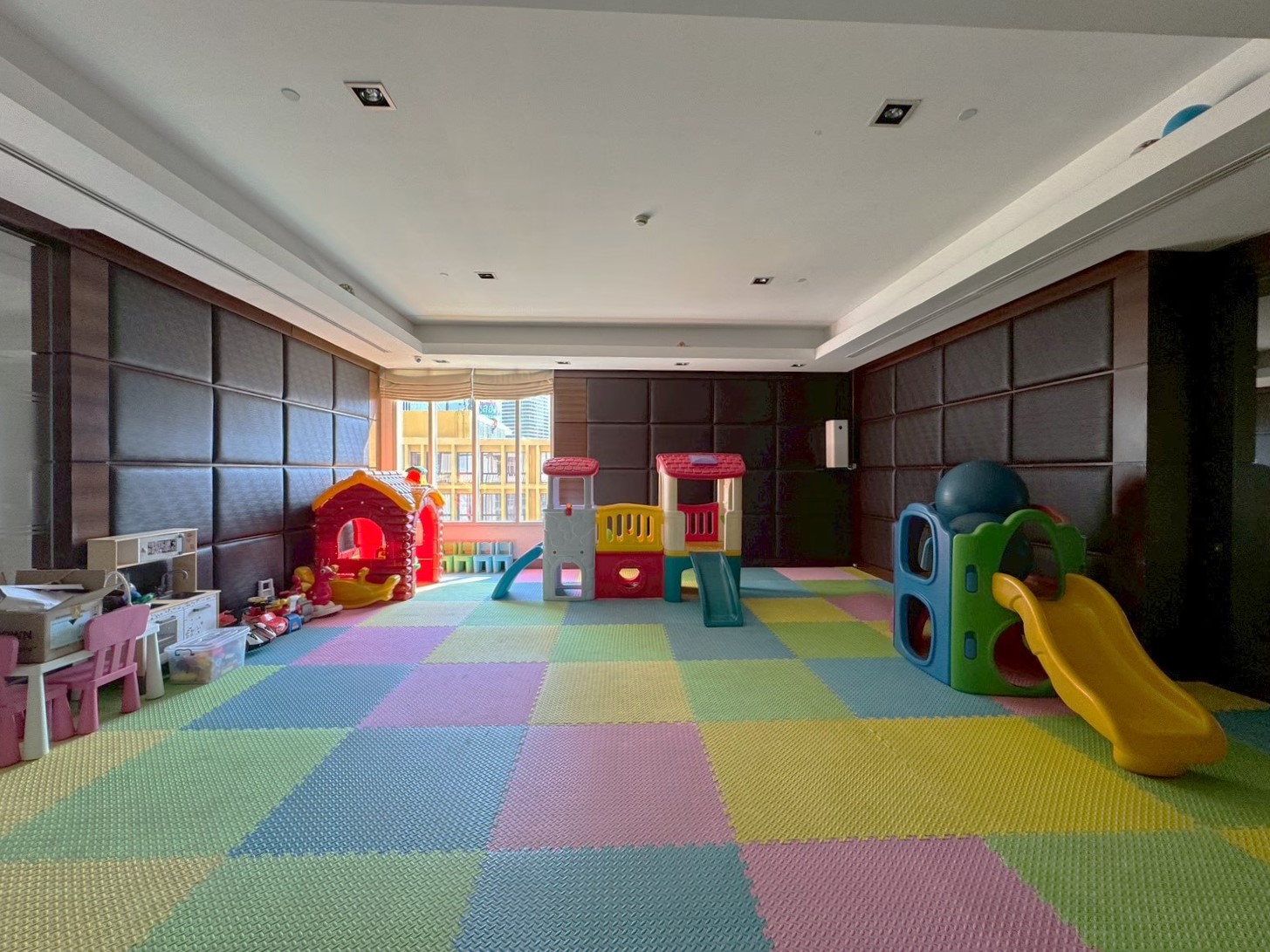Comprehensive facilities include a landscaped garden, swimming pool, fitness center, kids’ playroom, library, yoga room, meeting room, and more.