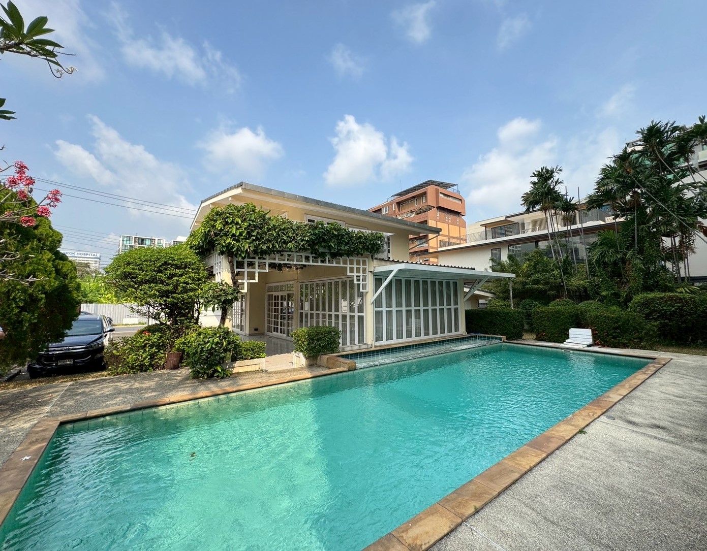 A charming vintage-style house offering a peaceful and private living environment, surrounded by greenery. Conveniently located just 5 minutes to Bangkok Hospital, RCA, and Thonglor.