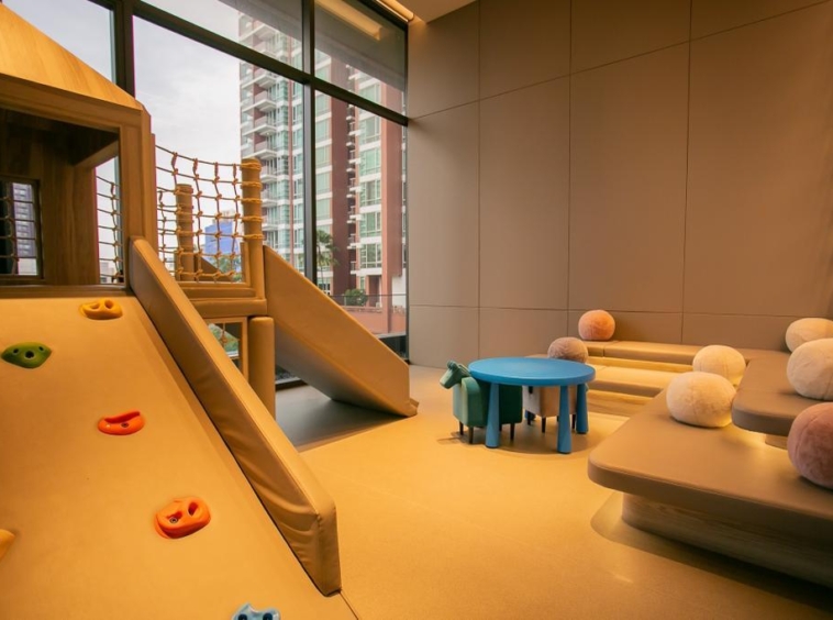 The project provides hotel-standard facilities, including a classic luxury lobby, swimming pool, fully equipped fitness center, spa, sauna, kids’ playroom, meeting room, and lush green common areas that create a private, home-like atmosphere.